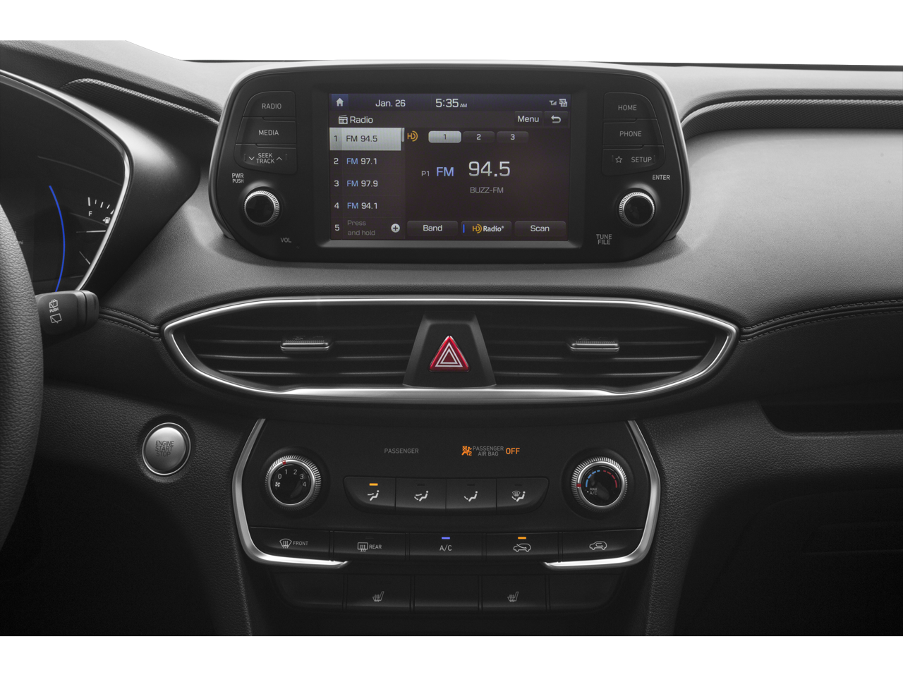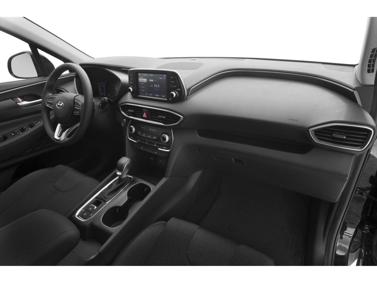 This 2019 Hyundai Santa Fe SEL boasts an impressive array of features that make it an exceptional value in the midsize SUV segment. Highlighted by - AM/FM radio: SiriusXM, Air Conditioning, Rear window defroster, Power driver seat, and Power steering. Additionally, this Santa Fe is equipped with convenience features such as Power windows, Remote keyless entry, and Steering wheel mounted audio controls.