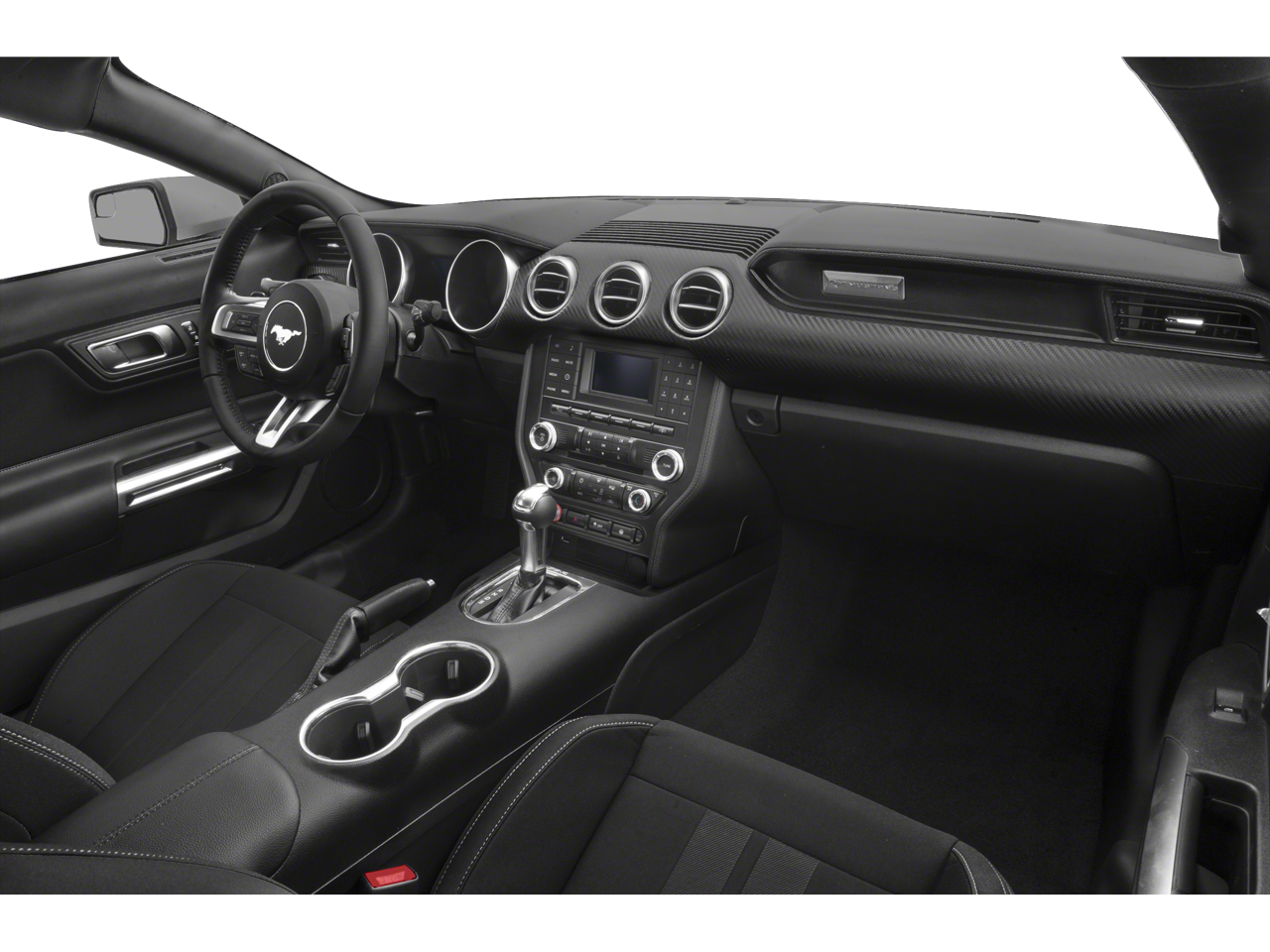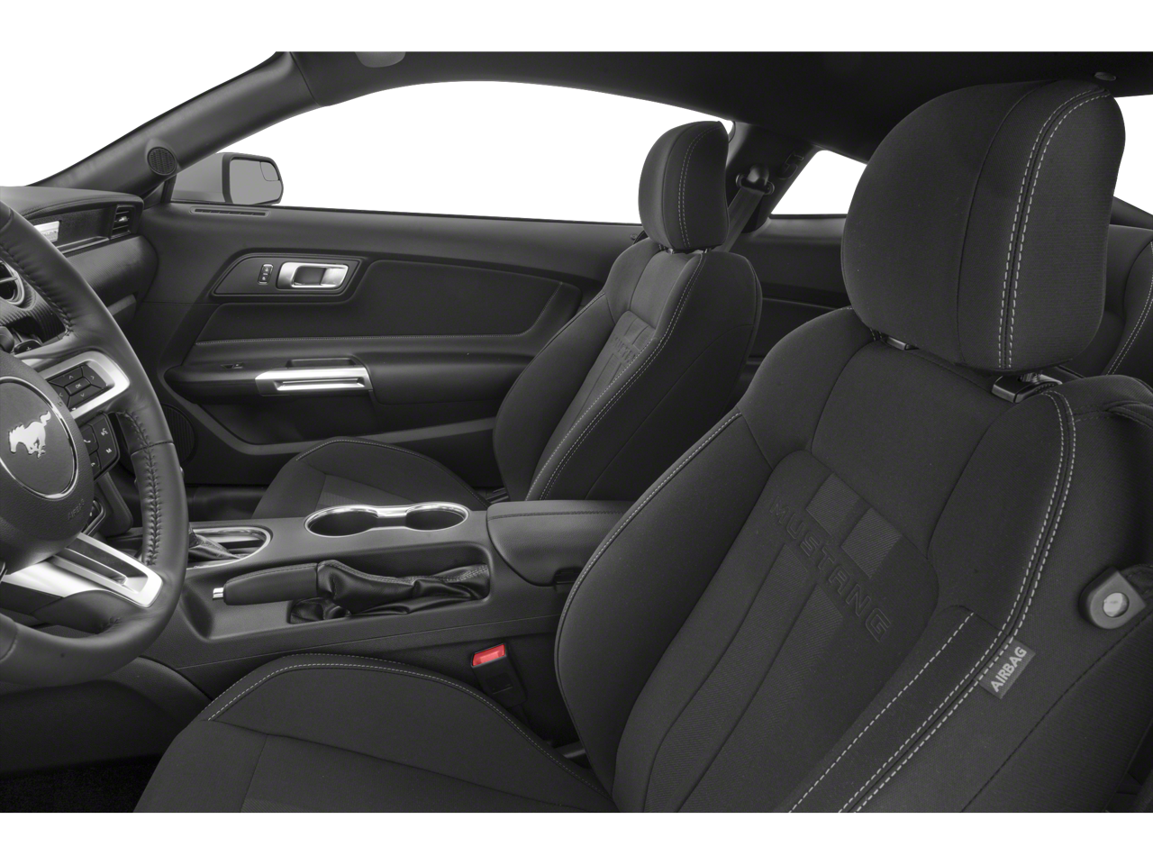 The sleek and aerodynamic exterior is accentuated by the Black Accent Package, which includes 19-inch Ebony Black-Painted Aluminum wheels, black mirror caps, and bold black front and rear pony badges. The Painted Black Roof adds a touch of sophistication, while the integrated turn signals in the side mirrors provide a seamless, modern look.