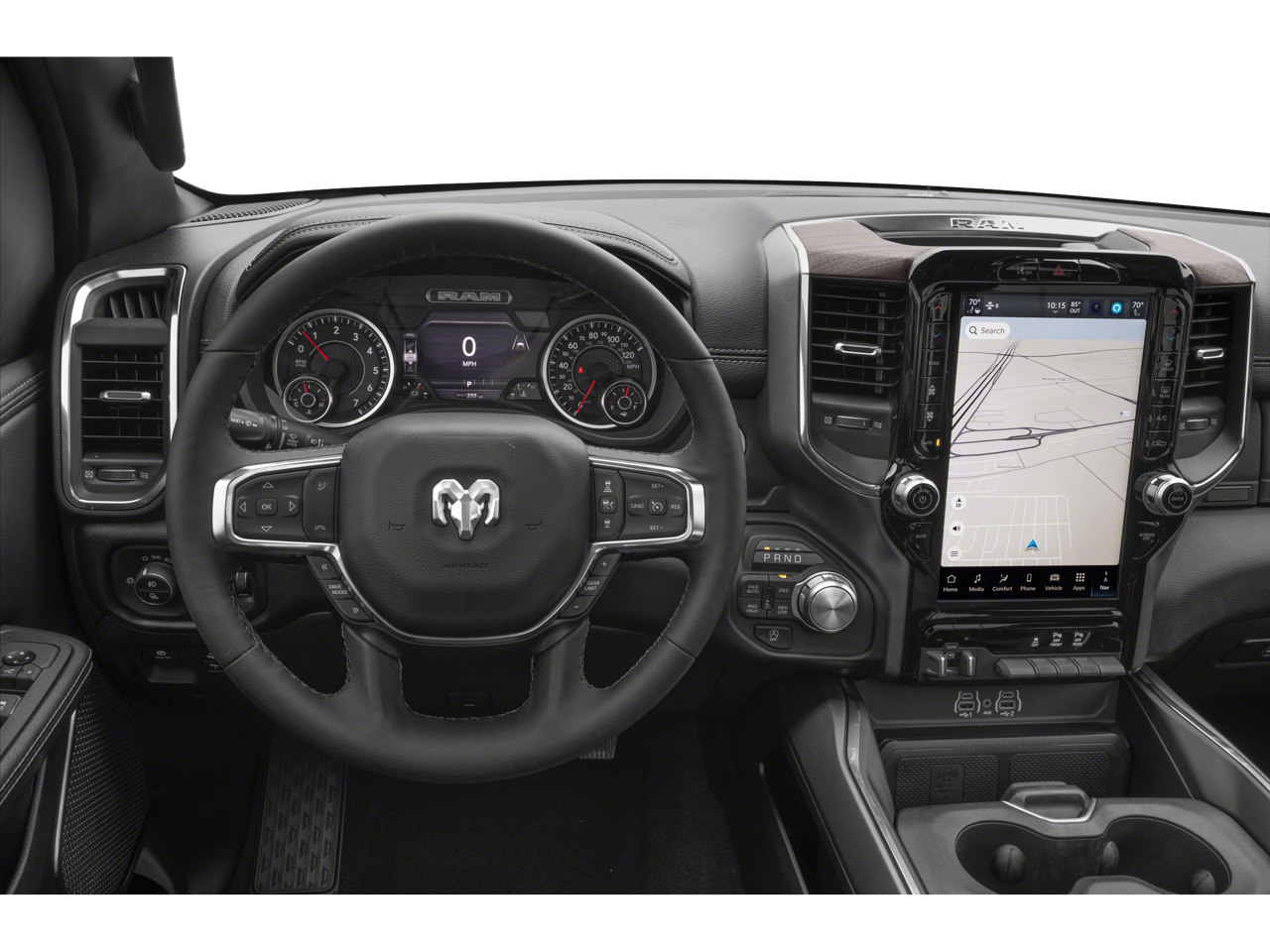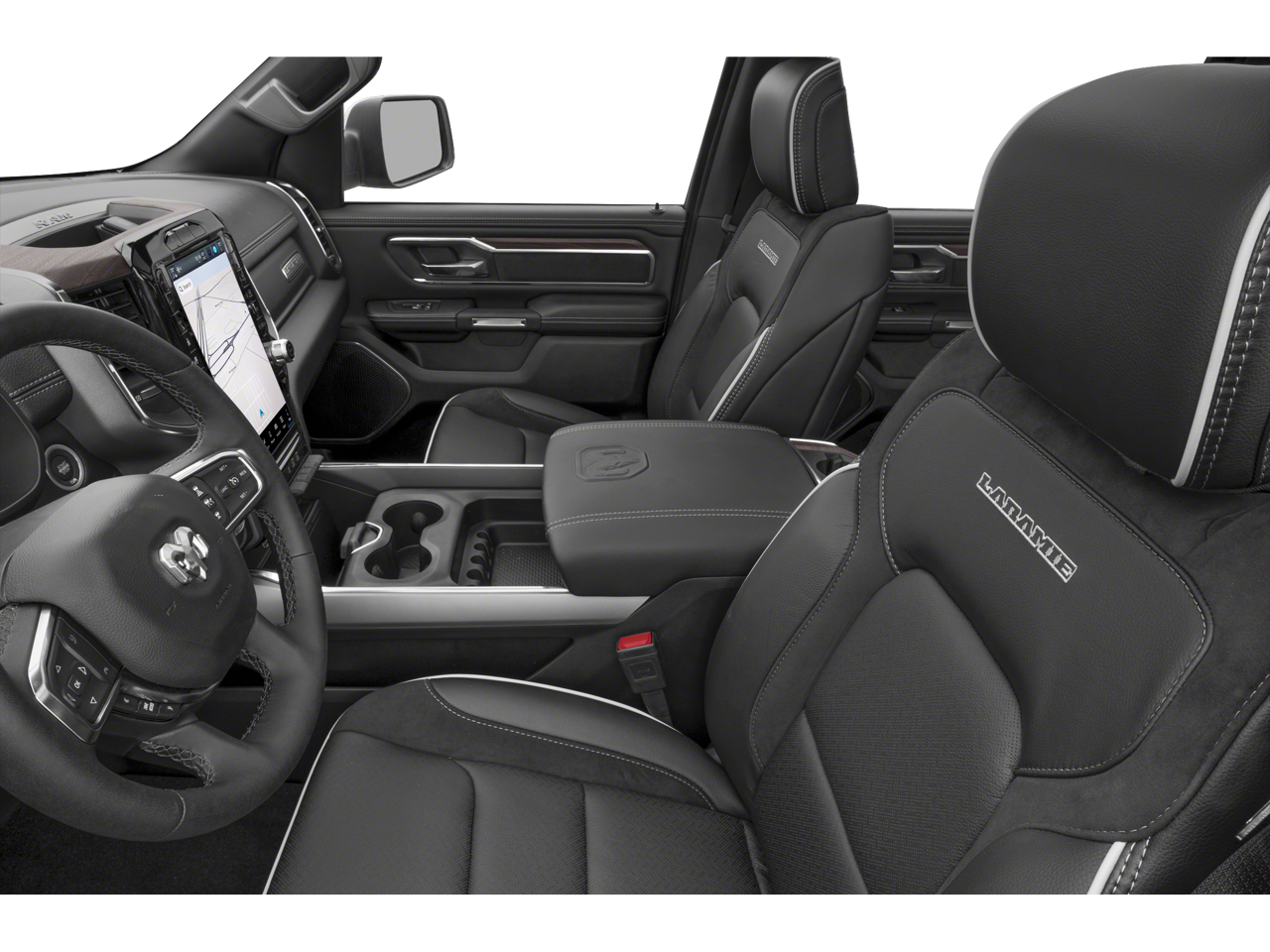 THIS VEHICLE HAS THE FOLLOWING FEATURES AND OPTIONS:Laramie Level 1 Equipment Group (Rain Sensitive Windshield Wipers and Remote Tailgate Release), Quick Order Package 21H Laramie, 10 Speakers, 3 Rear Seat Head Restraints, 3.55 Rear Axle Ratio, 4 Way Front Headrests, 4-Wheel Disc Brakes, 4G LTE Wi-Fi Hot Spot, ABS brakes, Air Conditioning, Alloy wheels, AM/FM radio: SiriusXM with 360L, Apple CarPlay, Apple CarPlay/Android Auto, Audio memory, Auto High-beam Headlights, Auto Power-Folding Mirrors, Auto-dimming door mirrors, Auto-Dimming Exterior Driver Mirror, Auto-dimming Rear-View mirror, Automatic temperature control, Brake assist, Bumpers: chrome, Chrome Exterior Mirrors, Compass, Connected Travel & Traffic Services, Connectivity - US/Canada, Convex Wide-Angle Exterior Mirror Insert, Delay-off headlights, Driver door bin, Driver Seat Memory, Driver vanity mirror, Dual front impact airbags, Dual front side impact airbags, Electronic Stability Control, Exterior Mirrors Courtesy Lamps, Exterior Mirrors w/Heating Element, Exterior Mirrors w/Memory, Exterior Mirrors w/Supplemental Signals, Front anti-roll bar, Front Center Armrest w/Storage, Front dual zone A/C, Front fog lights, Front License Plate Bracket, Front reading lights, Front Seat Back Map Pockets, Front wheel independent suspension, Fully automatic headlights, Garage door transmitter, Google Android Auto, GPS Antenna Input, GPS Navigation, HD Radio, Heated door mirrors, Heated Front Seats, Heated front seats, Heated rear seats, Heated Steering Wheel, Heated steering wheel, Illuminated entry, Integrated Voice Command w/Bluetooth®, Leather steering wheel, Leather Trim 40/20/40 Bench Seat, Low tire pressure warning, Manufacturer's Statement of Origin, Memory seat, Navigation System, Occupant sensing airbag, Outside temperature display, Overhead airbag, Overhead console, Panic alarm, ParkView Rear Back-Up Camera, Passenger door bin, Passenger vanity mirror, Power 2-Way Driver Lumbar Adjust, Power 2-Way Passenger Lumbar Adjust, Power Adjust 8-Way Front Passenger Seat, Power door mirrors, Power driver seat, Power passenger seat, Power steering, Power windows, Radio data system, Radio: Uconnect 5 Nav w/12.0 Display, RAM Grille Badge - Chrome, Rear anti-roll bar, Rear reading lights, Rear seat center armrest, Rear step bumper, Remote keyless entry, Security system, SiriusXM w/360L, Speed control, Split folding rear seat, Steering wheel mounted audio controls, Tachometer, Telescoping steering wheel, Tilt steering wheel, Traction control, Trip computer, Turn signal indicator mirrors, USB Host Flip, Variably intermittent wipers, Ventilated Front Seats, Ventilated front seats, Voltmeter, and Wheels: 20 x 9 Premium Paint/Polish.